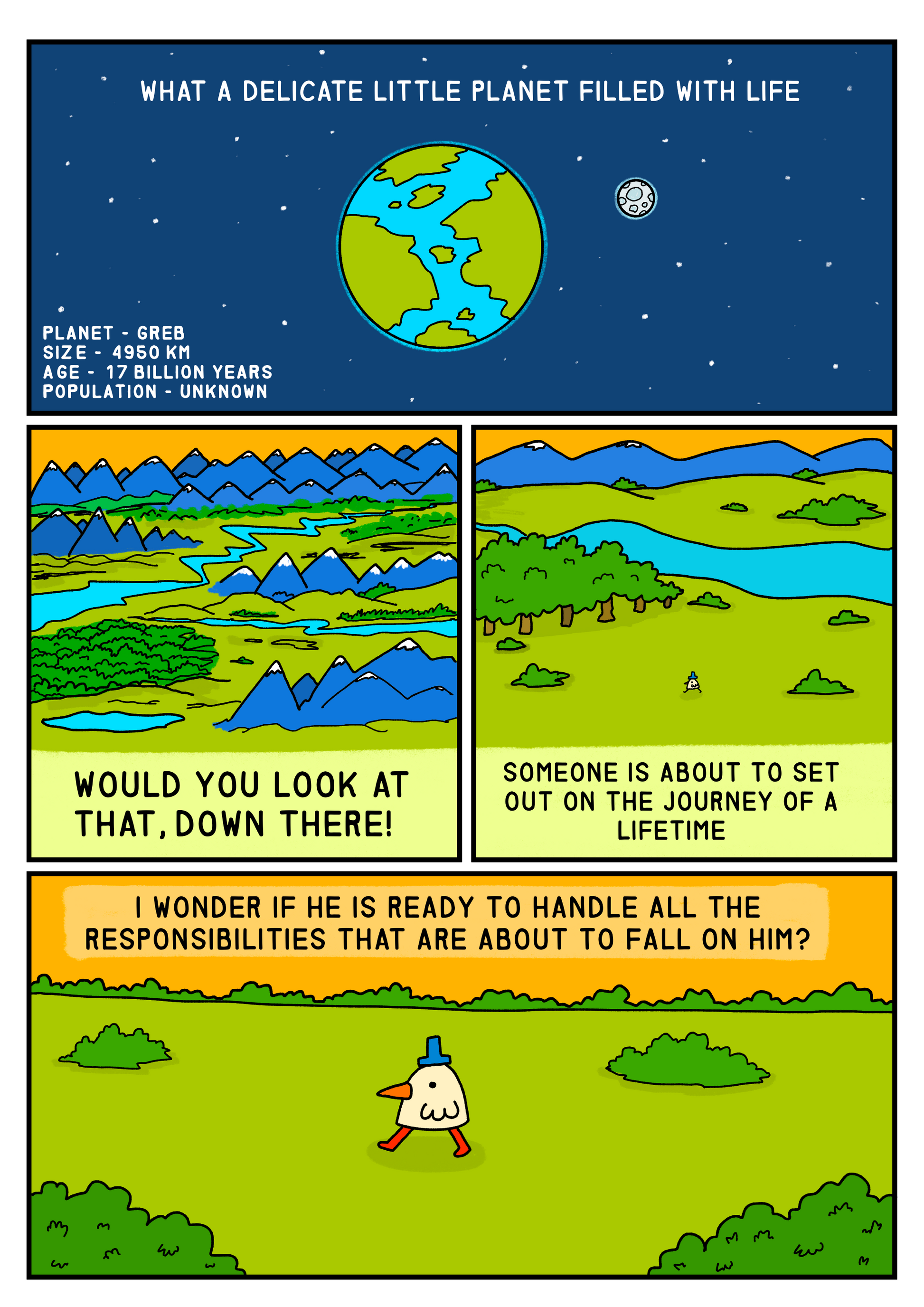 In this wholesome comic you will find out Baby's origin story, how she came to be in the care of Papa Bird and you will meet her first few friends!